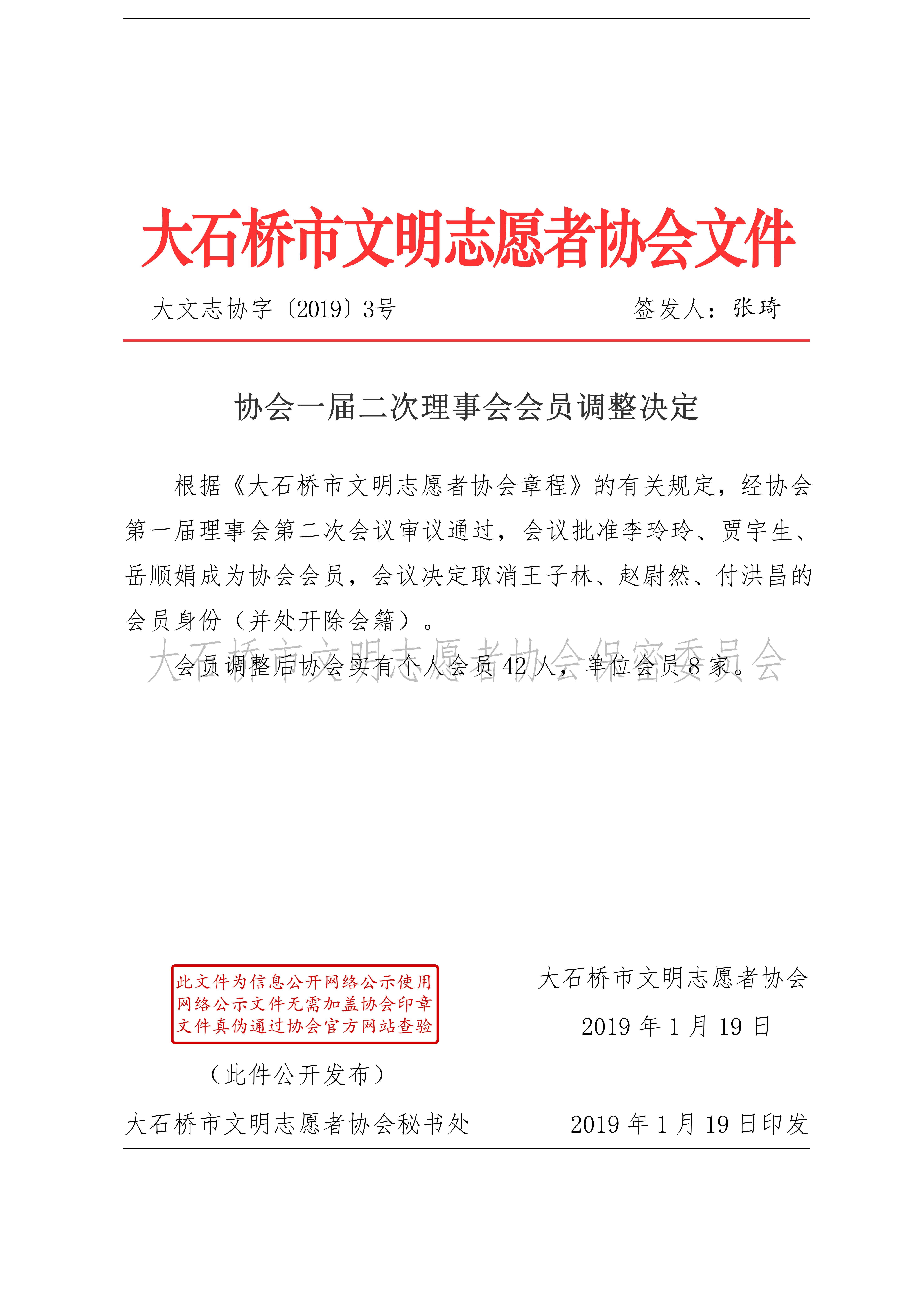 协会2019年3号:协会一届二次理事会会员调整决定