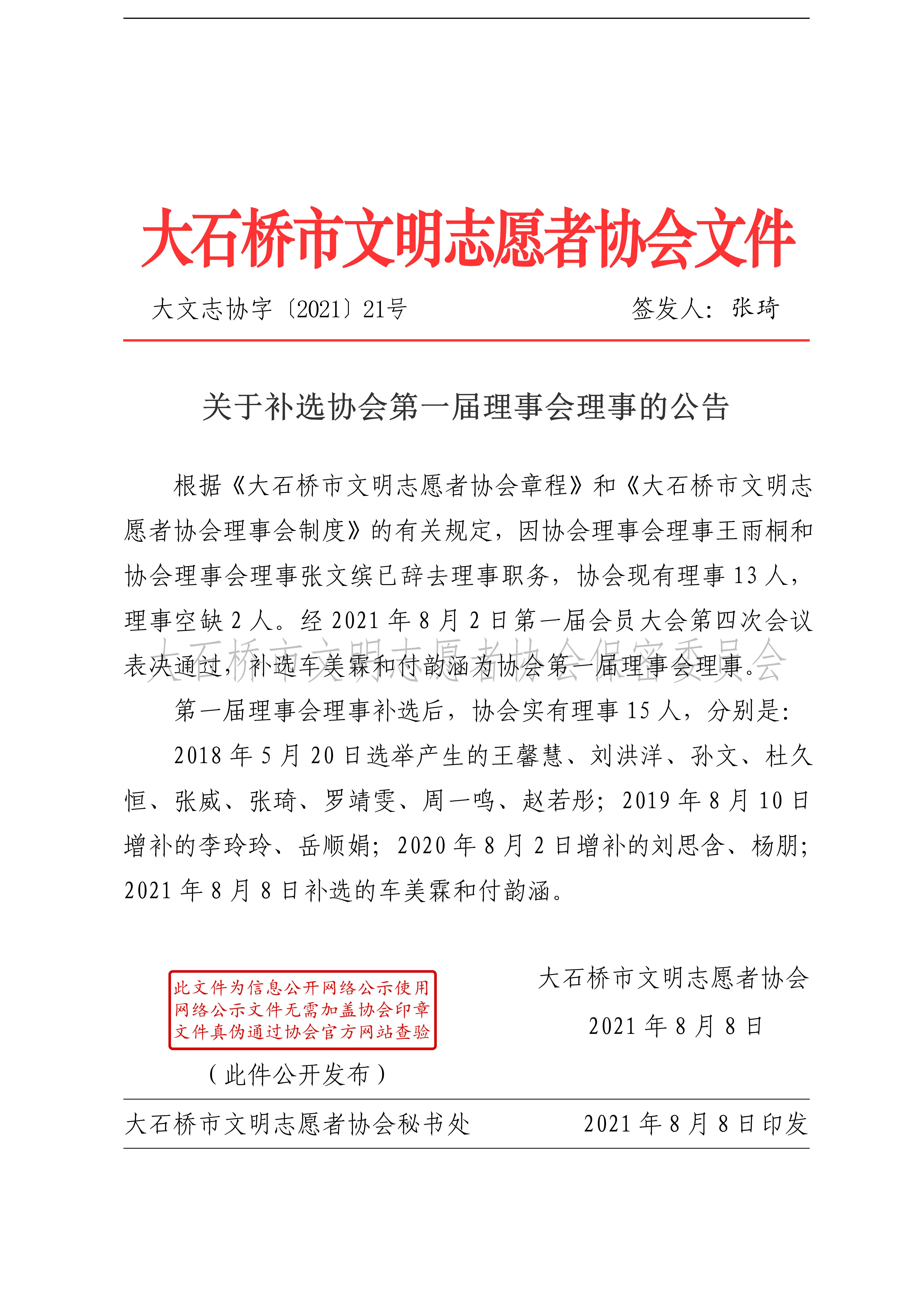 协会2021年21号:关于补选协会第一届理事会理事的公告